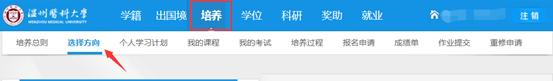 (1)选择培养方案研究方向:学生需要先选择研究方向,才能进入后续的个人学习计划制定的工作。流程:培养-选择方向-选择研究方向-保存研究方向-制定学习计划
