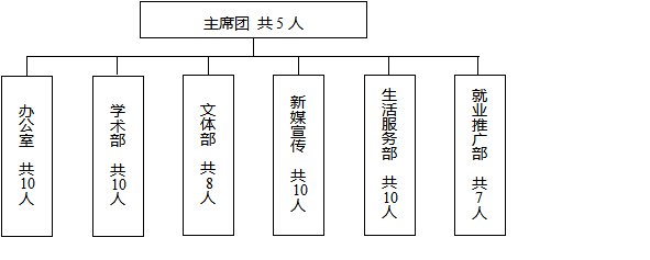 第二十六条 研究生会下属各工作职能部门是是研究生委员会的下属机构,实行负责人制,每个工作部门成员设负责人2至3人,工作人员一般不超过6人。各部门负责人有招聘和任免工作人员的提名权力,最终需主席团审定通过。研究生会主席团下设办公室、学术部、文体部、新媒宣传部、生活服务部和就业推广部6个部门机构,负责研究生会的日常职能工作。