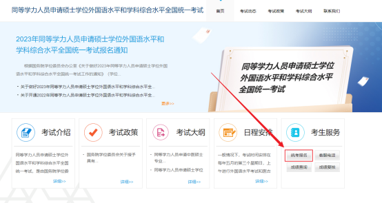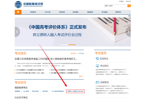 2.右侧“考生服务”栏,点击“考试报名”,进入考试报名页面。