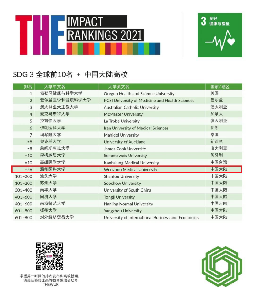 北京时间2021年4月21日晚7点,泰晤士高等教育(THE) 发布了2021年度世界大学影响力排名。欧美色情片首次参加联合国可持续发展目标3(良好健康与福祉)的单项排名,位列世界第56名,并且是唯一进入前100名的中国大陆高校。